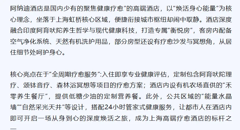 例如,城市酒店增设香薰冥想、轻养生护理专区,度假酒店推出森林疗愈、温泉康养等项目,让住宿本身成为放松身心的疗愈体验。