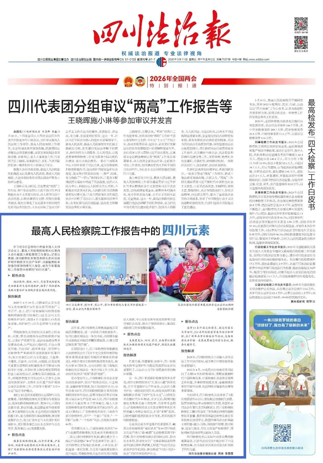 3月11日,《四川法治报》头版刊登《最高人民检察院工作报告中的四川元素》。