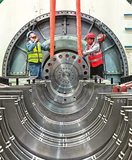 国电电力大同湖东发电有限公司1号机组发电机转子穿装作业一次成功。