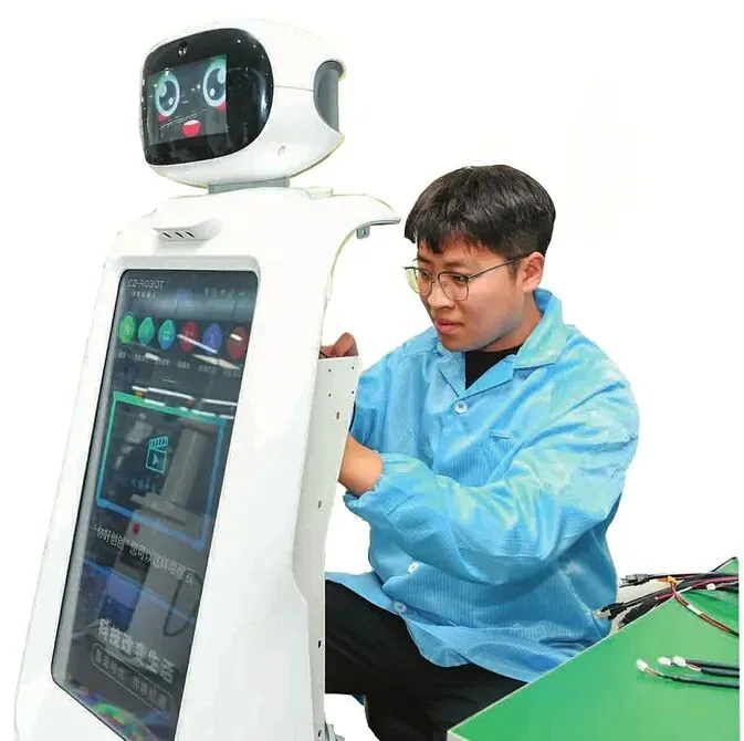 临汾创泽具身智能机器人有限公司,技术人员正在作业。