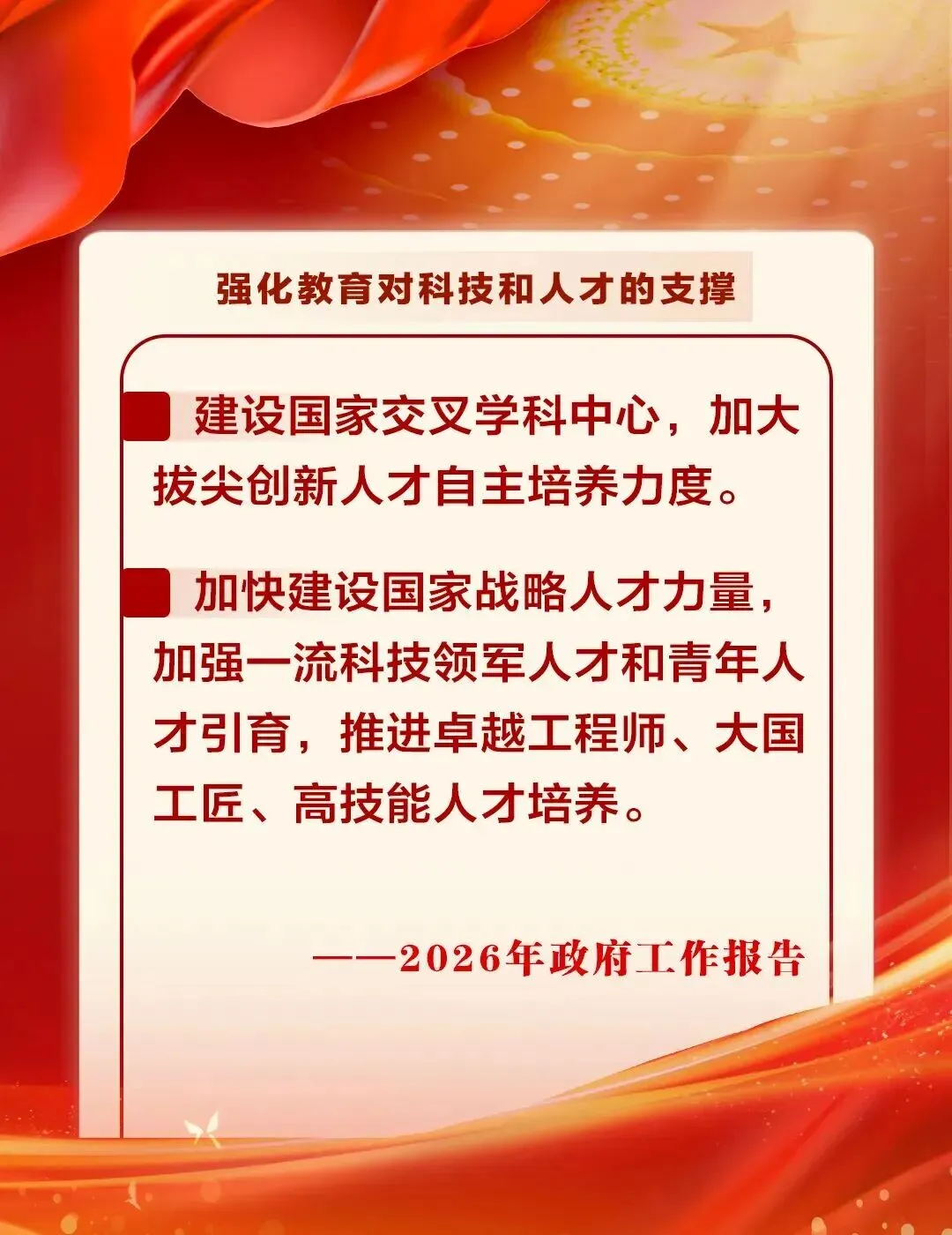 春风送暖,全国两会如期而至。2026年作为“十五五”开局之年,政府工作报告为教育事业发展划定了清晰蓝图,每一个关键词都紧扣时代脉搏,更与我们的学习、实践、成长紧密相连。