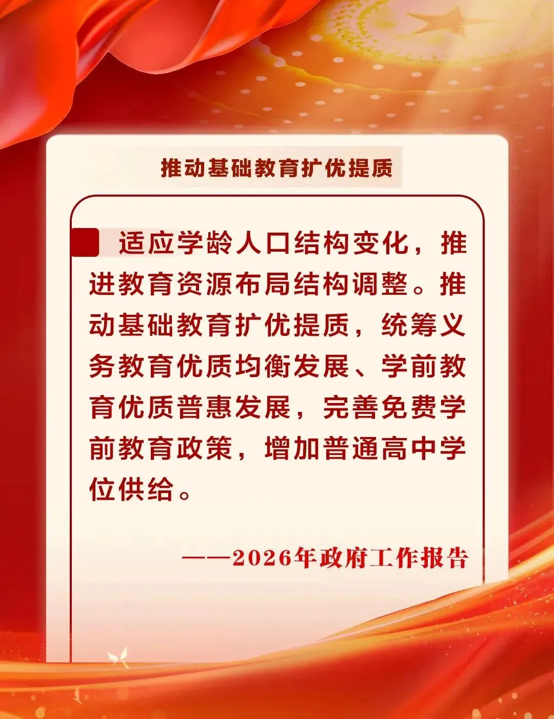 从学前教育优质普惠到义务教育优质均衡,从完善免费学前教育政策到增加普通高中学位供给,基础教育的“扩优提质”,也为我们的教学工作指明方向——用更优质的教学,守护孩子们的成长起点。