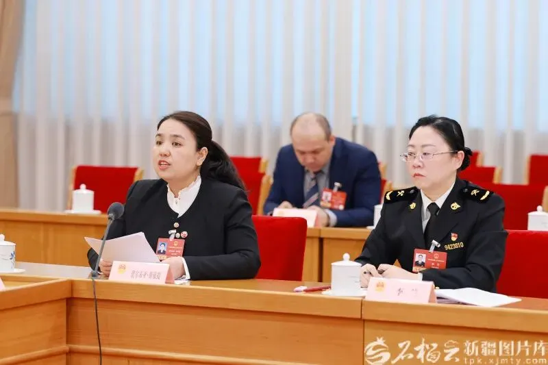 سۈرەتتە: ۋەكىل دىلشات پەرھات (ئالدىنقى رەت ئوتتۇرىدا) سۆز قىلغاندا غەربىي قىسىم رايونلاردىكى سوت مەھكىمىلىرىدە چەت ئەلگە ئالاقىدار سوت قىلىش ئىختىساسلىقلىرىنى «تاللاش، يېتىشتۈرۈش، باشقۇرۇش، ئىشلىتىش»بويىچە تەربىيەلەشنى تېزلىتىش قاتارلىقلار توغرىسىدا تەكلىپ بەرمەكتە.
