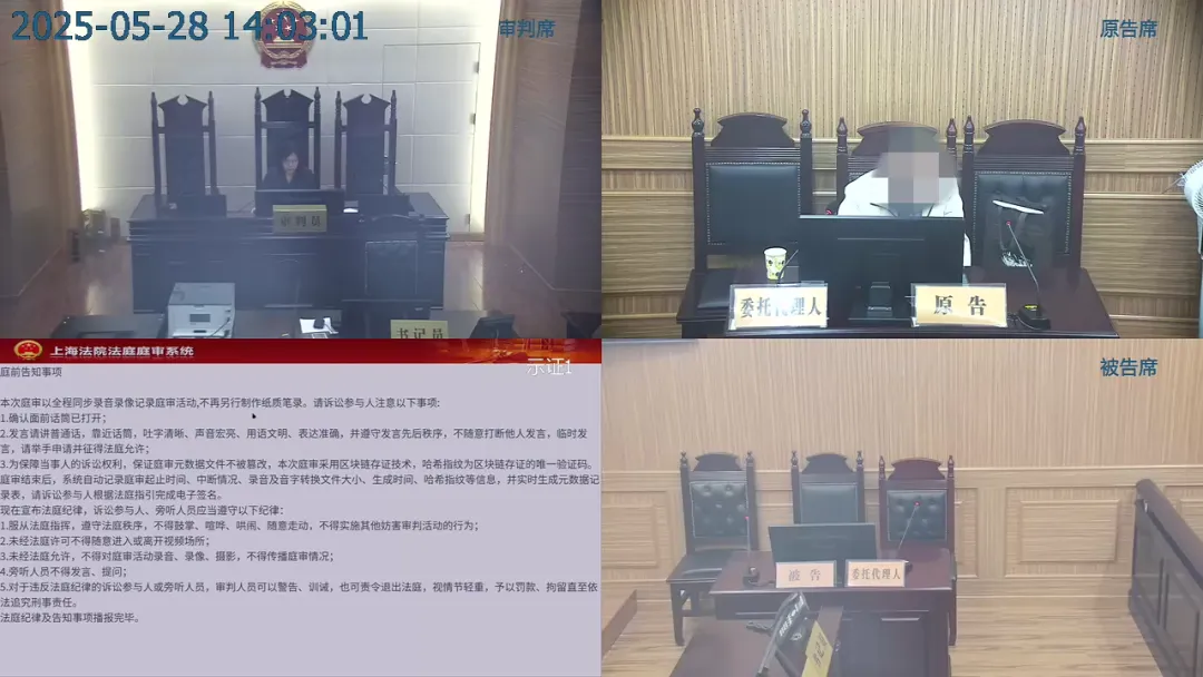 图为法院审理视频截图。