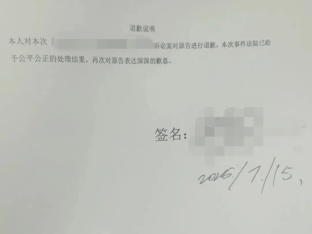 图为被告履行书面道歉。