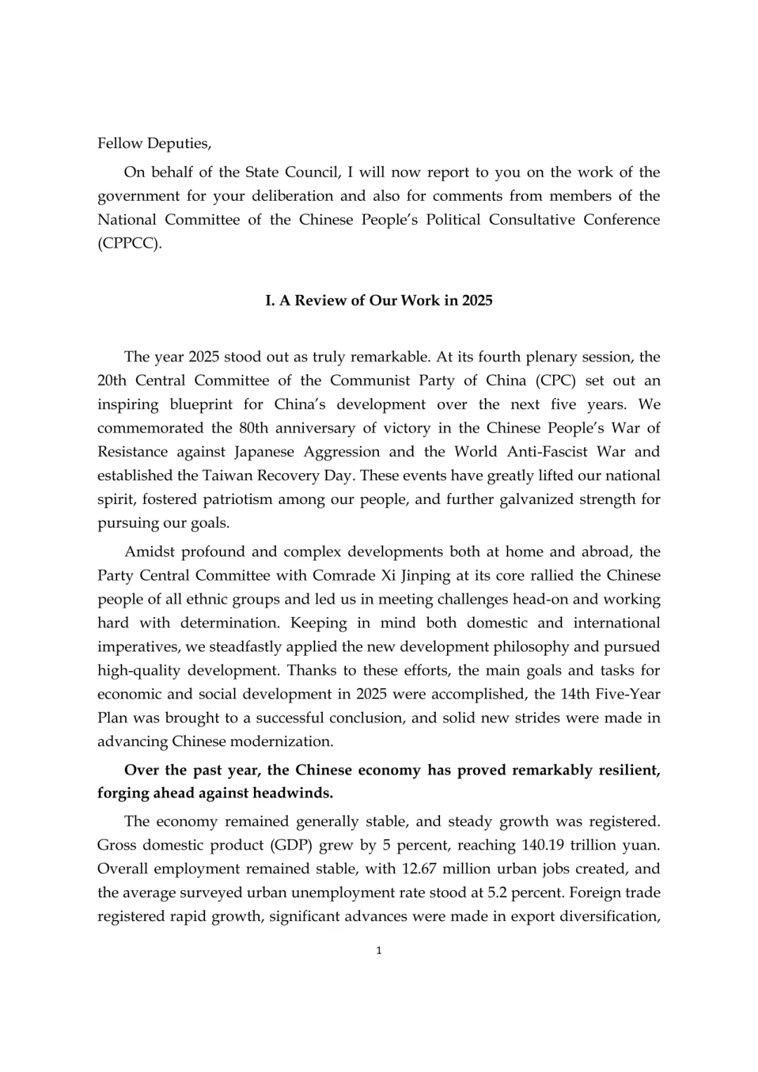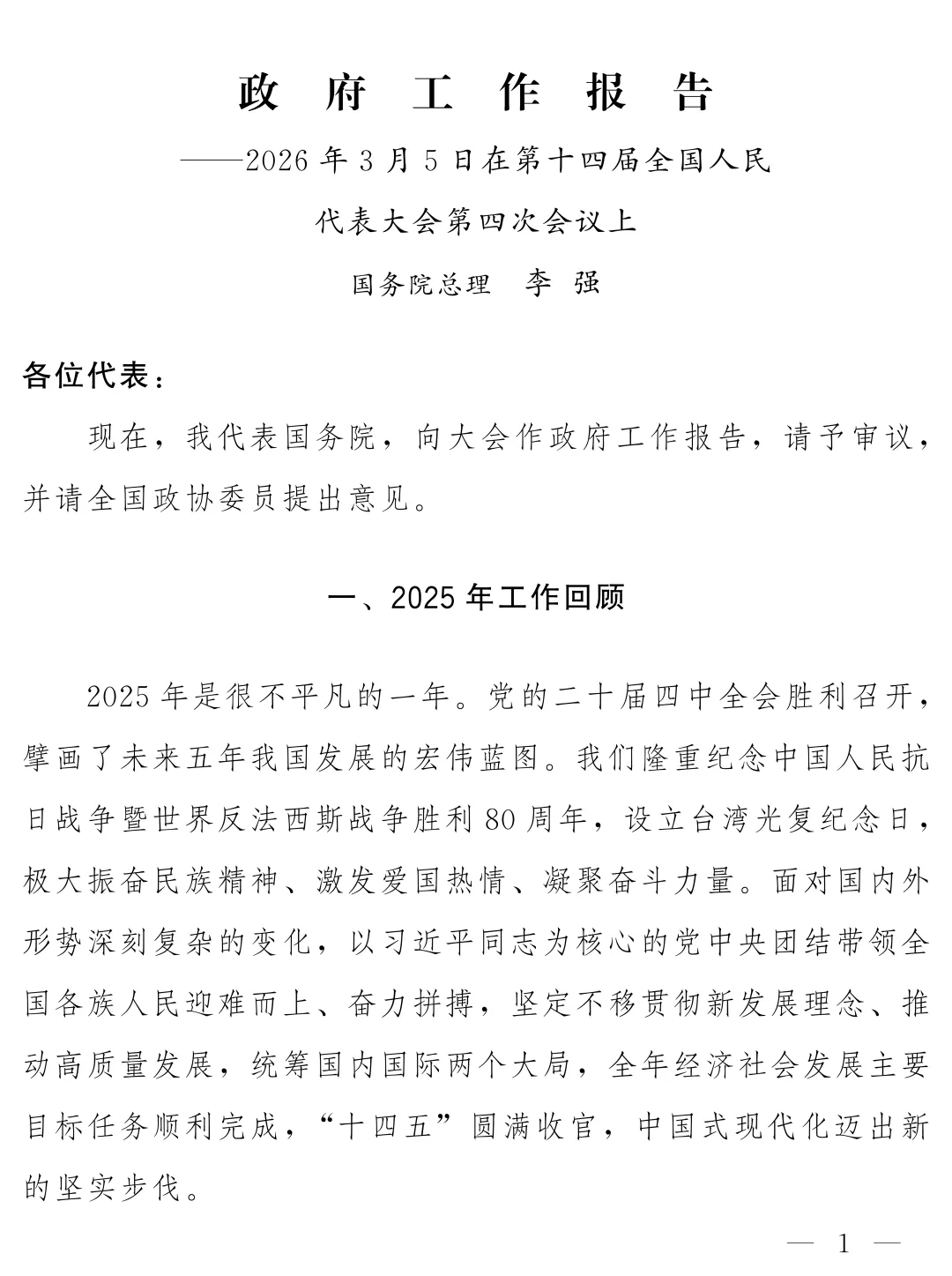 当前位置:首页>工作报告>双语|2026年政府工作报告全文下载
