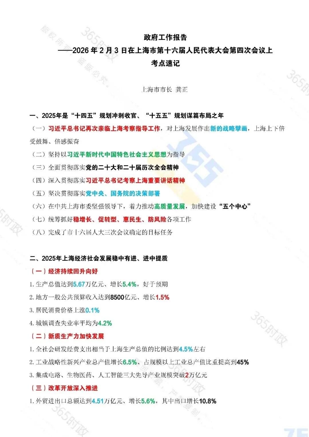 2.(多选)2026年2月3日,龚正在上海市第十六届人民代表大会第四次会议上作报告。报告指出:2025年全市经济持续回升向好。下列有关说法无误的是()。