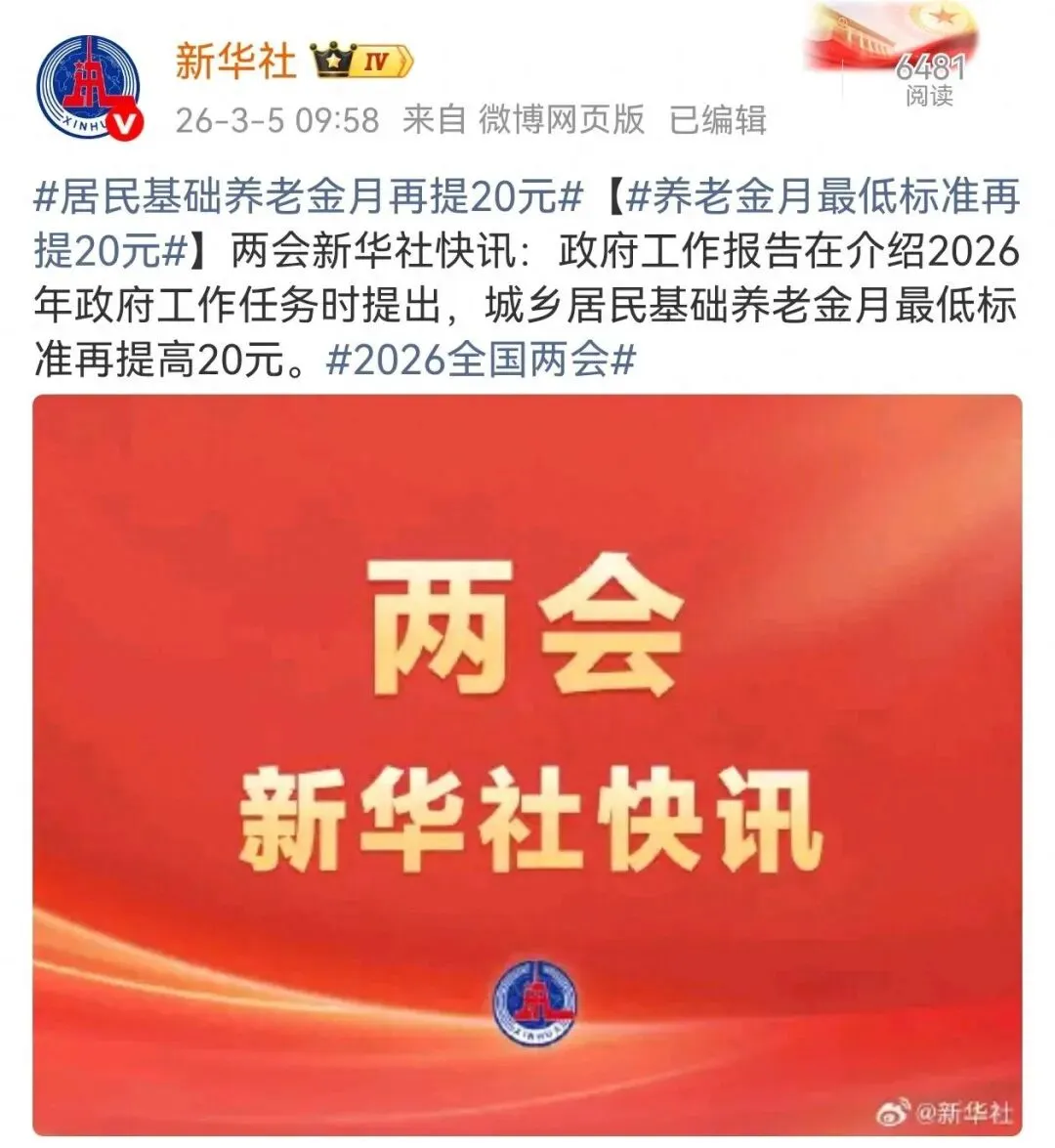 一套是城乡居民养老保险,主要是农村老人和城里没工作的老人领的。这套系统靠财政补贴,所以报告里可以直接拍板:"今年涨20块!"