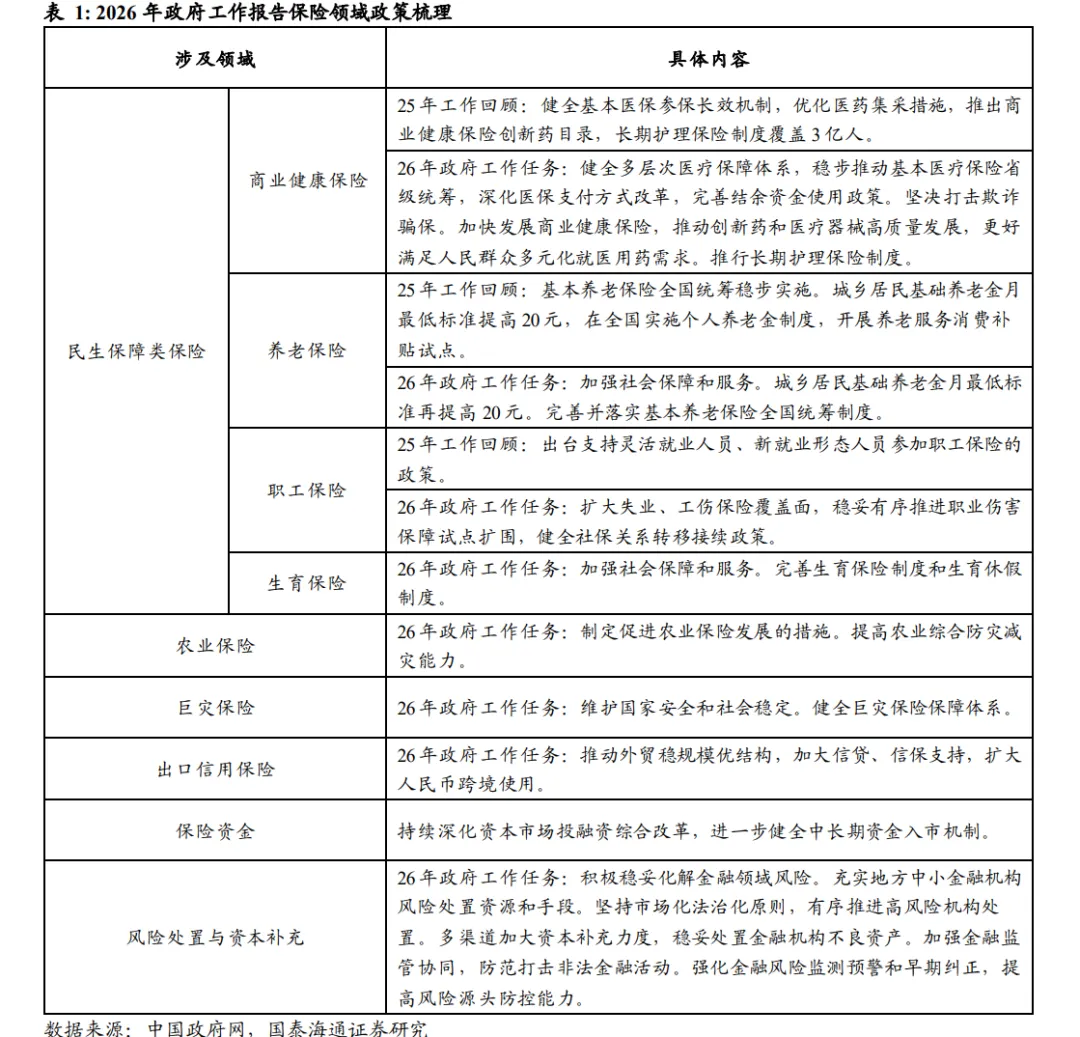 深度解读 | 保险行业2026年政府工作报告保险相关政策点评:保障业务提质扩面,“长钱入市”功能彰显