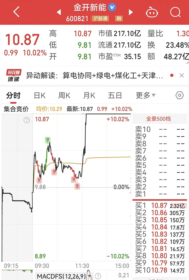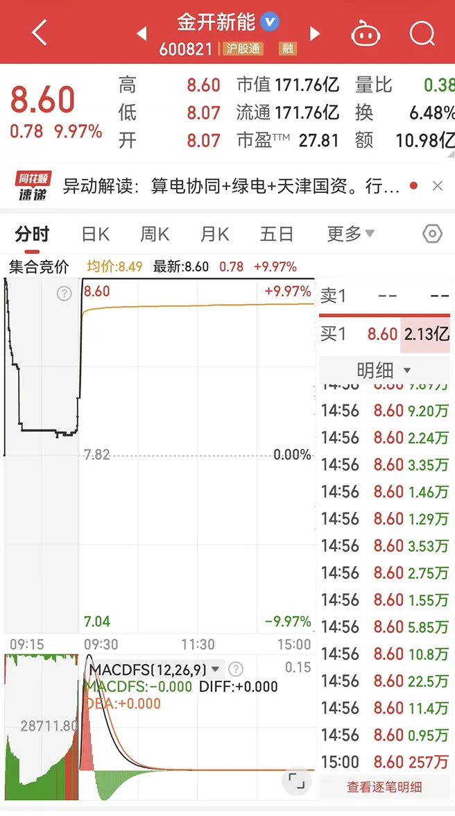 节能风电、金开新能涨停,算电协同 + 政策催化 + 游资抱团3月4日当天是冰点延续,但是早盘金开新能比豫能控股更强,这也是第一天发现金开新能。3月4日,豫能控股却是炸板,尾盘没有封住。这一波算力协同核心是豫能控股,但是后来出现监管消息,监管压力下,其不敢再狂飙突进。国泰海通证券武汉紫阳东路
