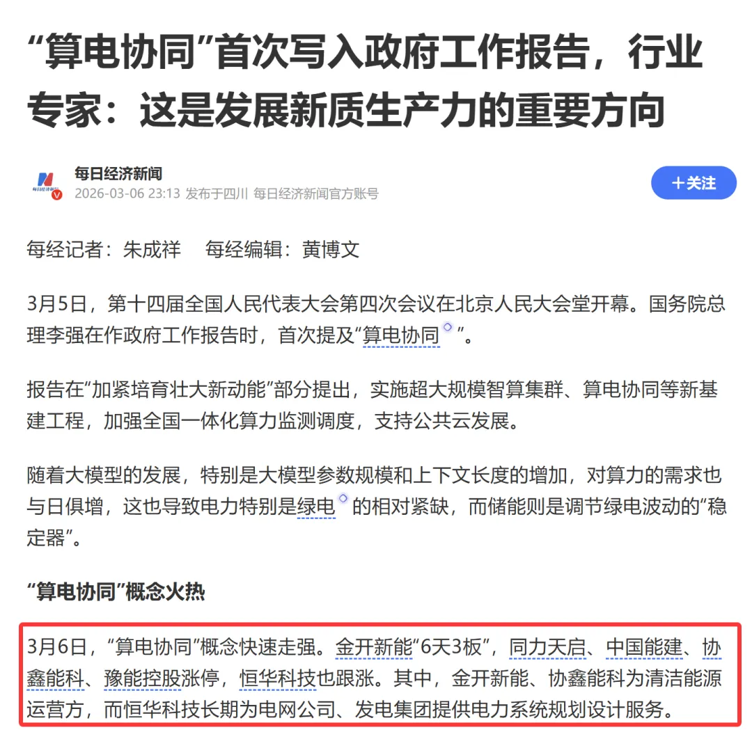绿电概念一 | “算电协同”首次写入政府工作报告,金开新能:紫阳东路、成都系