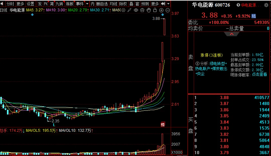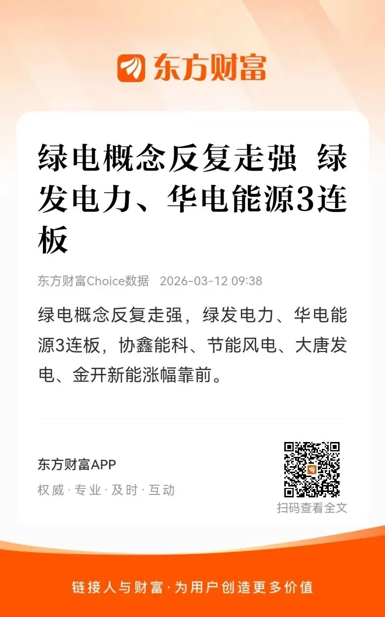 华电能源09:35分触及涨停,分析或为:绿电转型+热电联产+煤炭概念+央企绿电概念反复走强,绿发电力、华电能源3连板,协鑫能科、节能风电、大唐发电、金开新能涨幅靠前。消息面上,《数据中心绿色低碳发展专项行动计划》明确要求,国家枢纽节点新建数据中心绿电占比需超过80%,并将可再生能源利用目标作为节能审查重要内容。参考同花顺、东方财富、开盘啦“算电协同”首次写入政府工作报告,行业专家:这是发展新质生产力的重要方向,每日经济新闻,2026-03-06 23:13,本文不构成投资建议,风险自担。