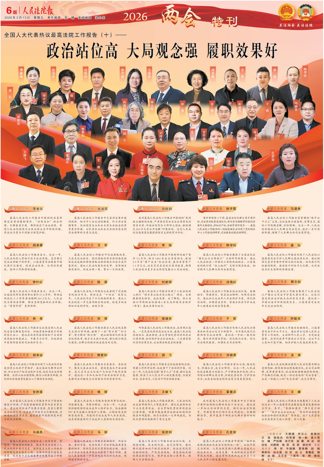 最高人民法院工作报告全面展现了人民法院过去一年以高质量司法服务高质量发展的担当作为。其中,“坚持和落实‘两个毫不动摇’”“保护企业合法权益”“坚决纠治违规异地执法和趋利性执法”等内容,让广大民营企业家更有底气放心经营、安心发展。