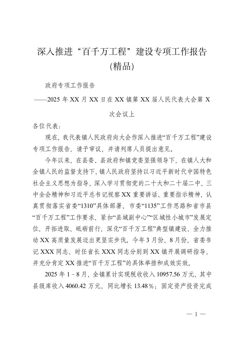 >深入推进“百千万工程”建设专项工作报告(精品)