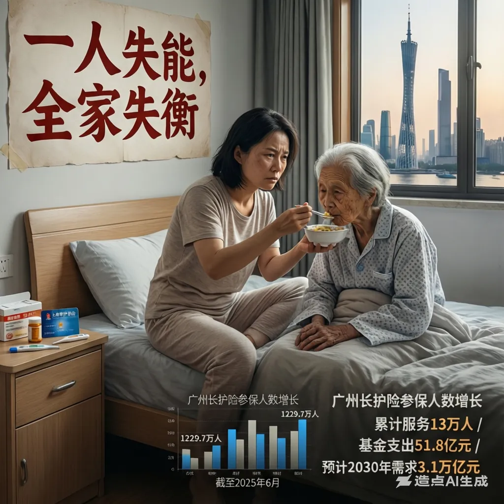 在广州,截至2025年6月,长护险参保人数已达1229.7万人,累计超13万名失能人员享受到待遇,基金支出超51.8亿元。预计到2030年,长期护理服务需求将达3.1万亿元。