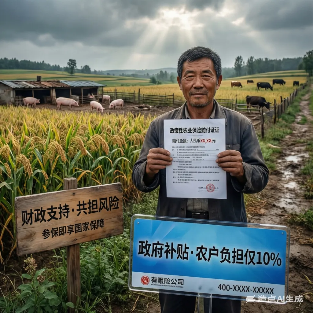 农民买了农业保险,种庄稼、养猪养牛遇上灾疫、价格下跌,保险公司按合同赔钱,帮农户扛过难关。政策性农业保险实行财政补贴,农户实际负担比例最低仅10%。