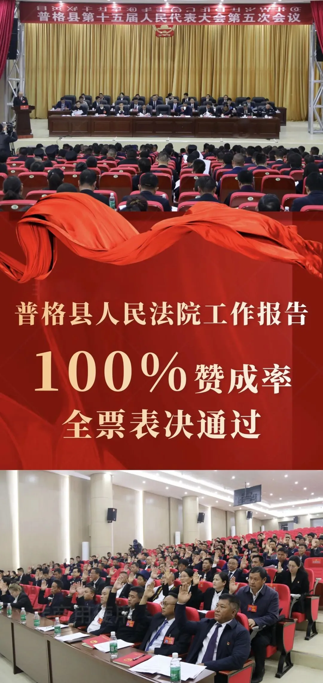 3月12日,普格县第十五届人民代表大会第五次会议胜利闭幕。经大会表决,普格县人民法院党组书记、院长侯锐锋所作的工作报告获全票通过。