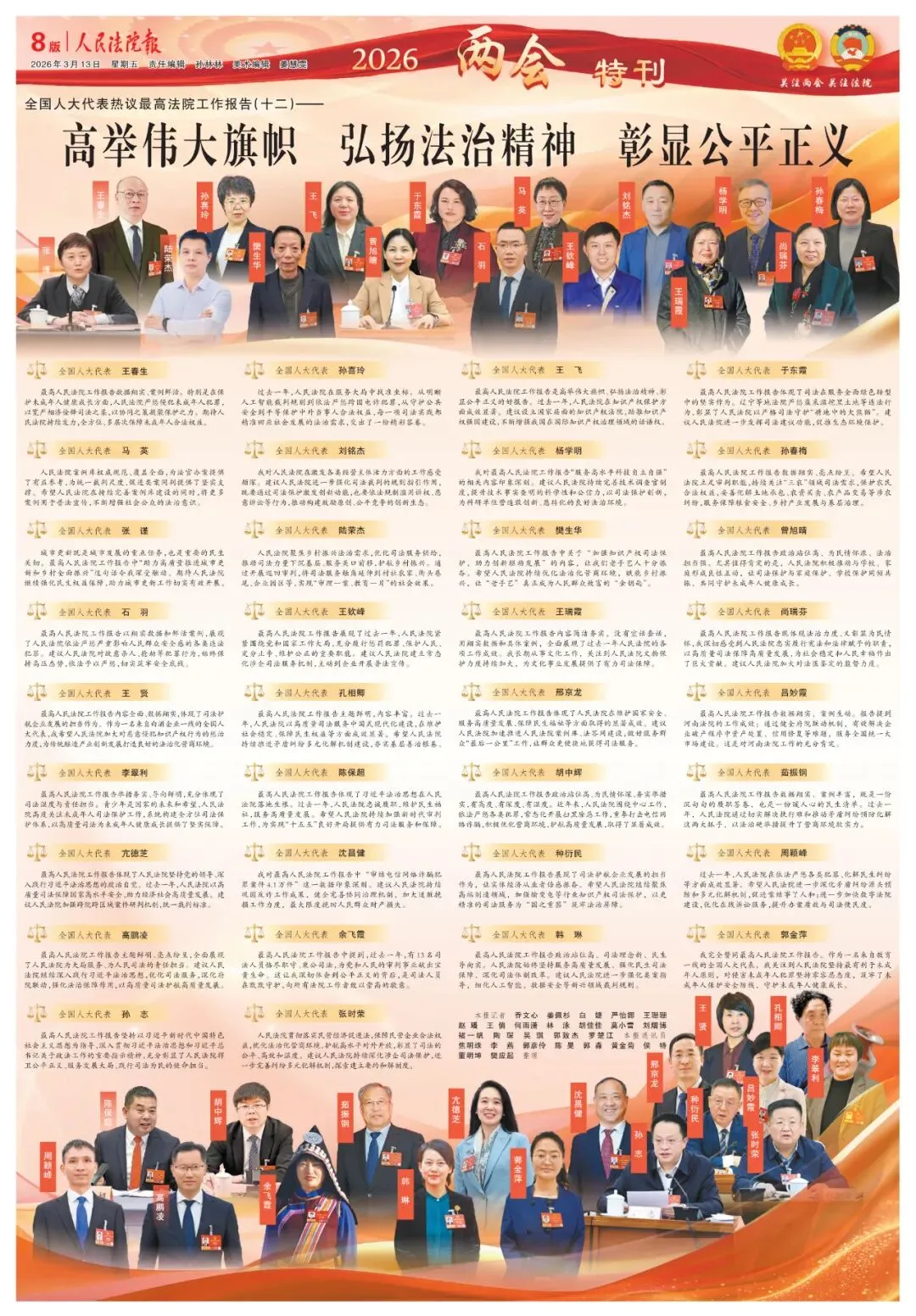 最高人民法院工作报告中提到,过去一年,有13名司法人员恪尽职守、秉公司法,为党和人民的审判事业献出宝贵生命。这让我深切体会到公平正义的背后,是司法人员在默默守护,向所有法院工作者致以崇高的敬意。