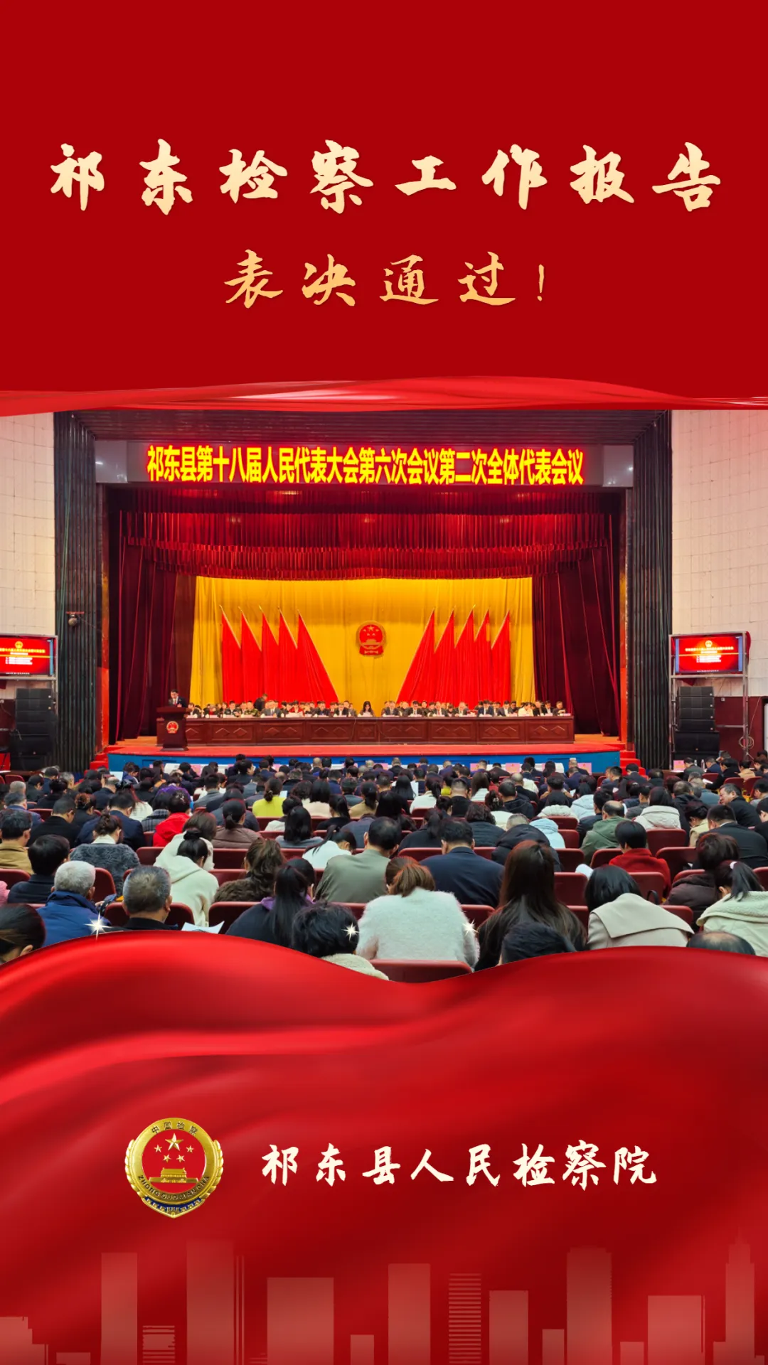 3月13日,在祁东县第十八届人民代表大会第六次会议上,经会议表决,《祁东县人民检察院工作报告》获表决通过。