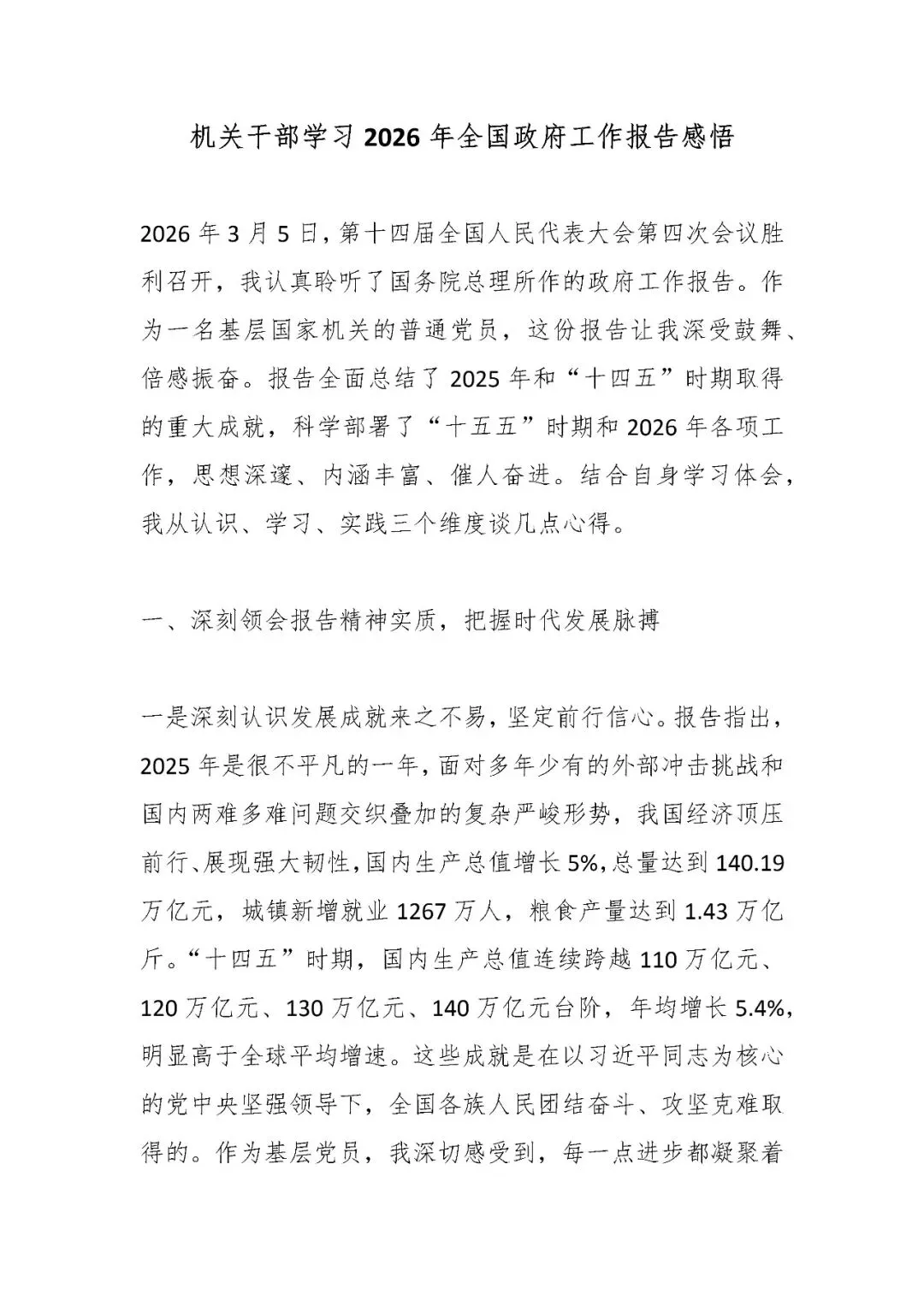 机关干部学习2026年全国政府工作报告感悟