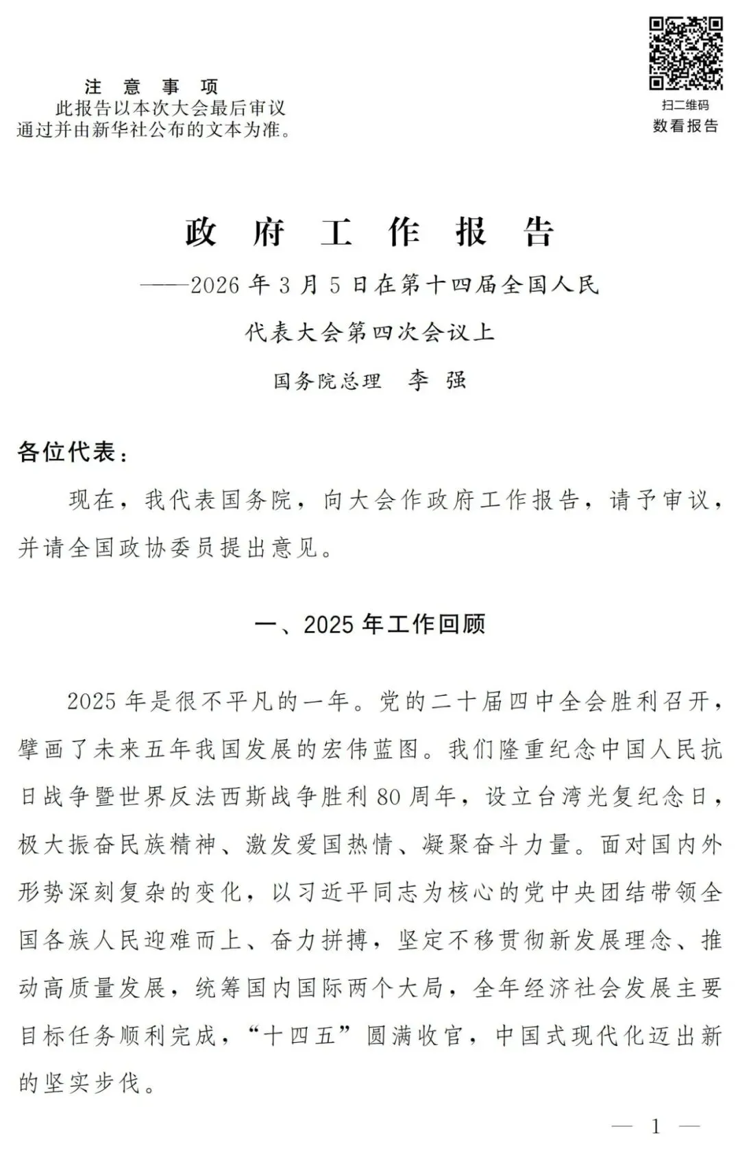 >2026年全国两会《政府工作报告》原文35页(pdf完整电子版)