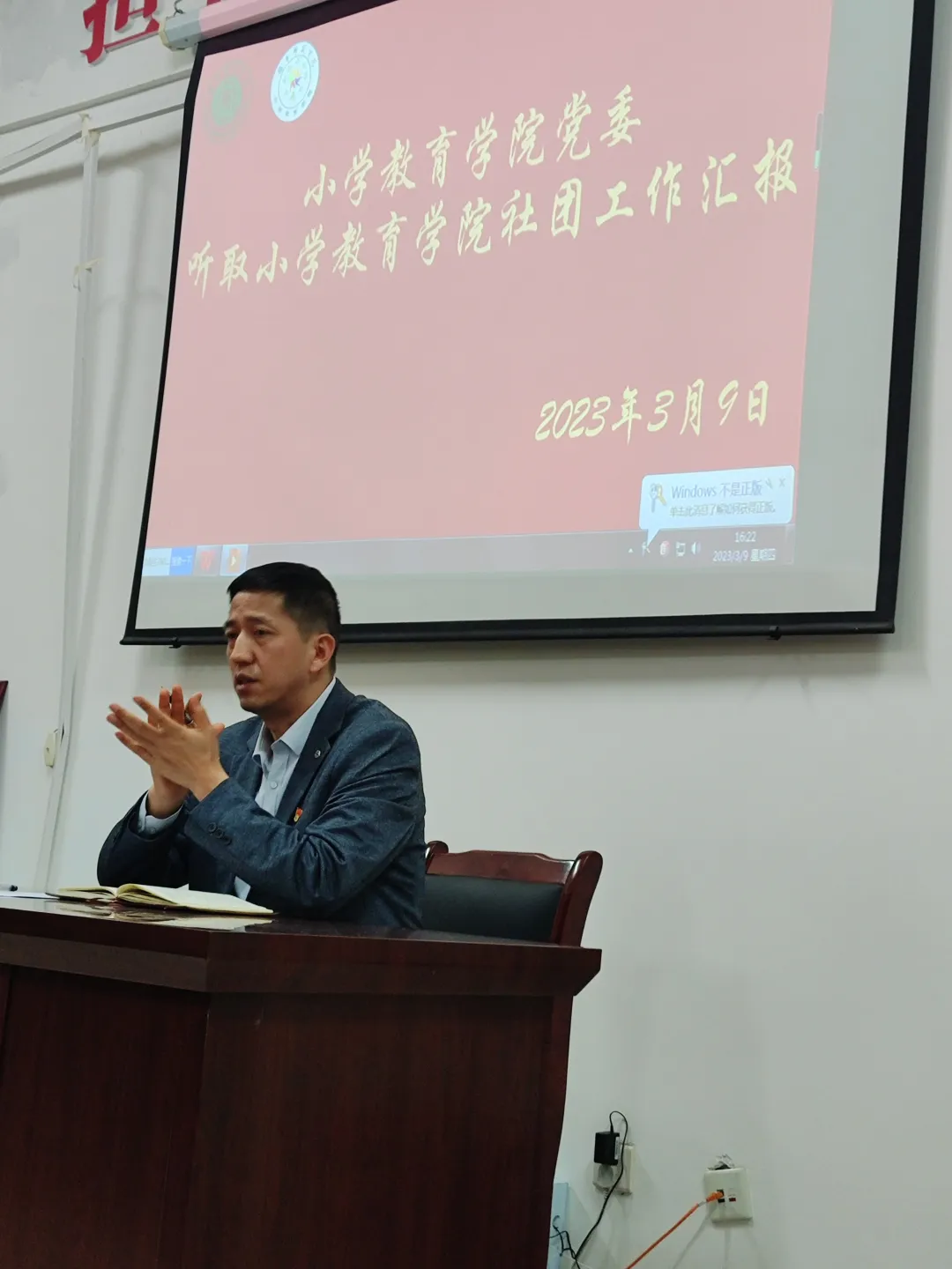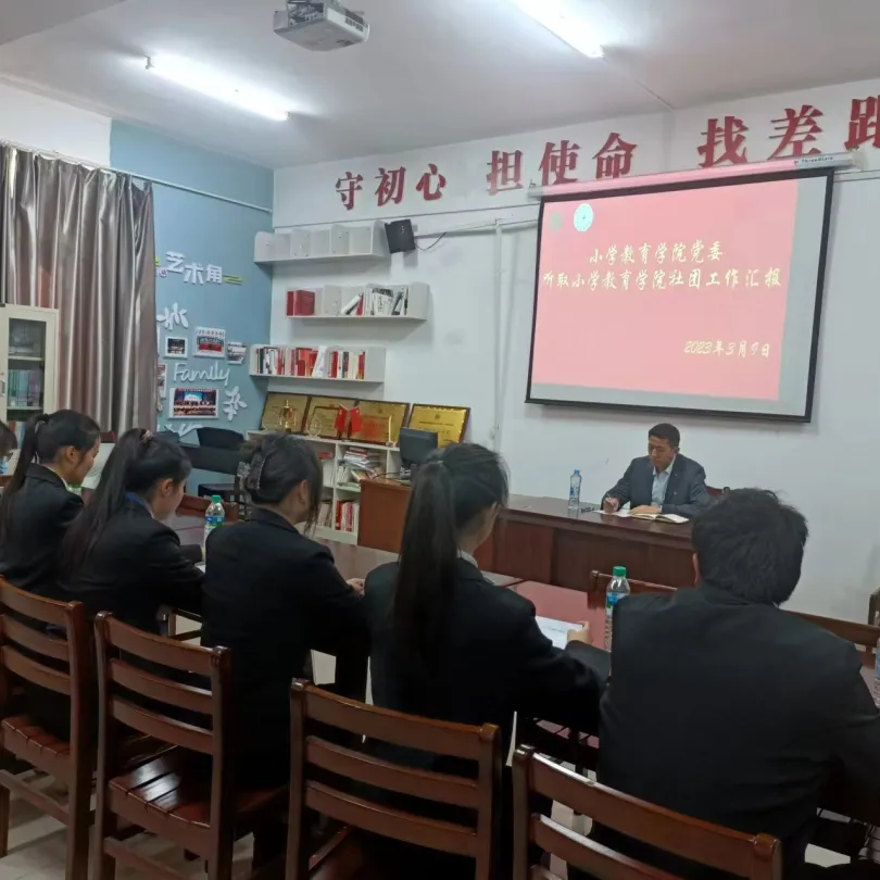 3月9日,小学教育学院党委副书记夏国华在文科楼421听取了小学教育学院所辖社团工作汇报。