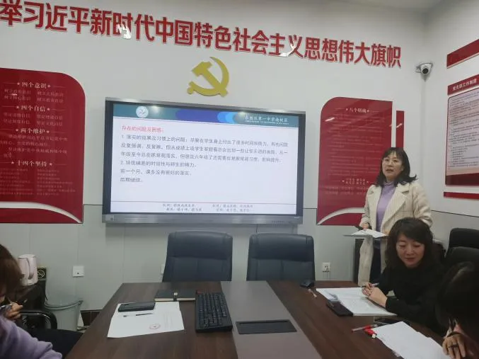 第二项由六年级语文、数学、英语备课组长就开学以来本学科的教学情况作学情分析,三位老师精准分析一个月以来存在的问题以及今后改进的措施,分析明得失,反思促提升,通过调整师生的学习状态,总结经验,更好地前行。