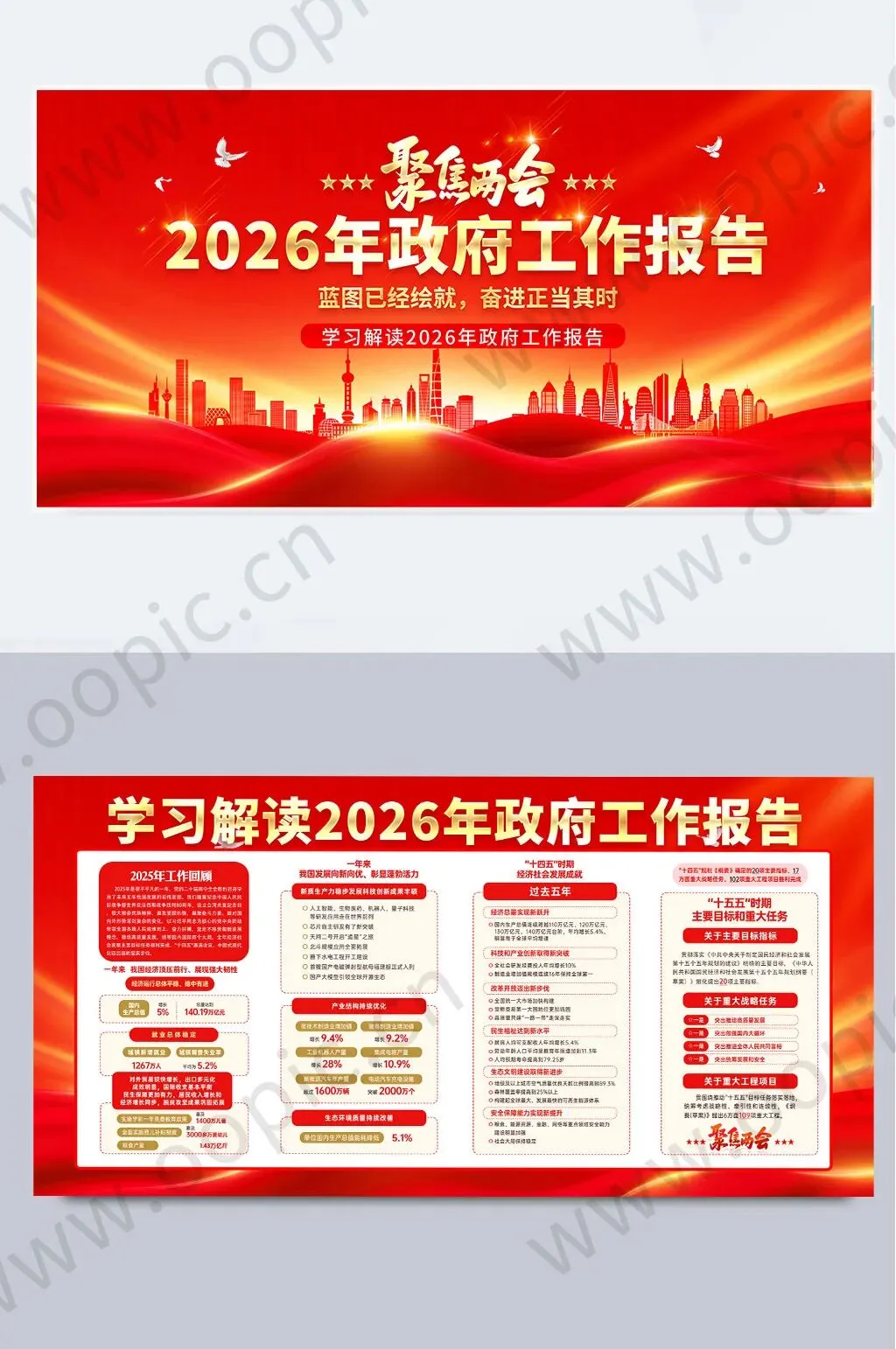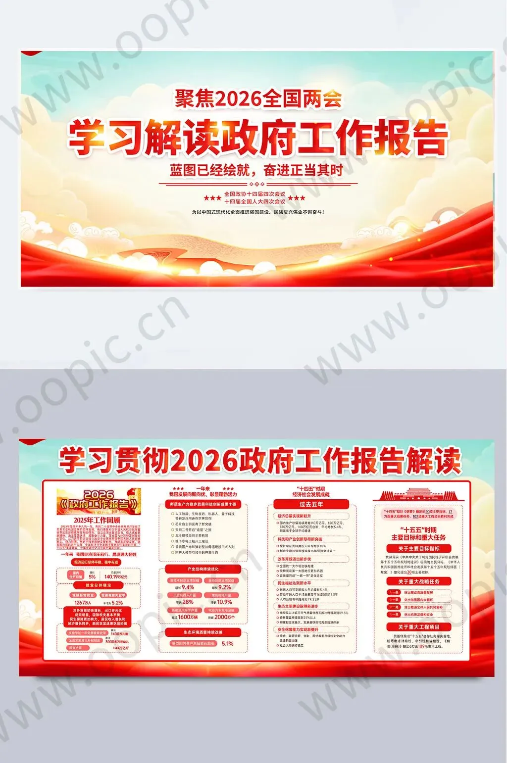 >【展板】2026两会政府工作报告学习展板PSD图片宣传栏设计