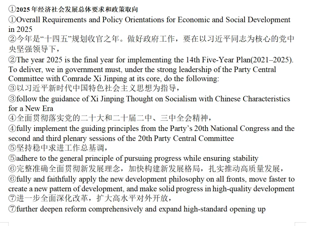 《2025年政府工作报告》双语全文,由新华社发布。本文仅作为学习资料分享。