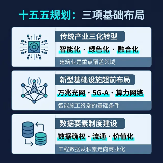 纲要草案对智能建造没有专章表述,但它确立的三个产业方向,实质上为智能建造划定了政策空间和基础条件。
