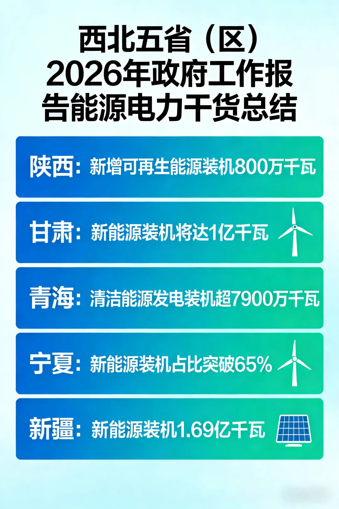 西北五省(区)2026年政府工作报告中能源电力干货总结(陕、甘、青、宁、新)