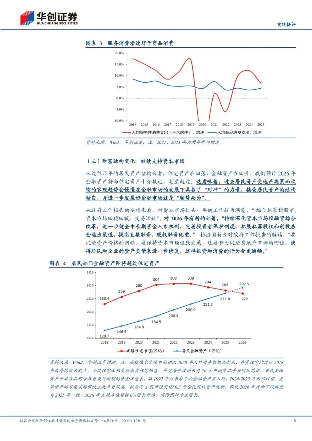 。2021 年到2025 年经济结构转型剧烈,量变终于累积质变,GDP 新旧经济占比、居民金融与地产资产占比、消费的服务和商品增速、上中下游表需增速都发生了关键的“交叉”,这意味着向后看的“旧势能”拖累越来越小,向前看的“新势能”将越来越具备总量经济的支撑作用。