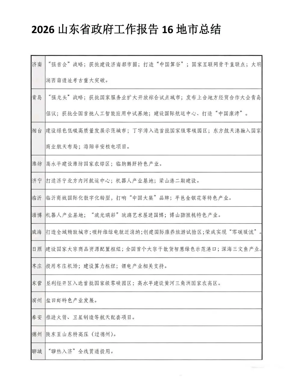刚出炉的2026山东省政府工作报告,把16个地市的核心任务、王牌项目全摊牌了!