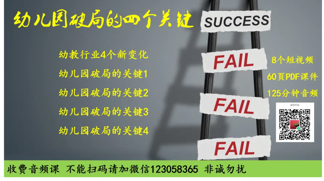 方向不对,努力白费!各位举办者和园长,现在最重要的任务就是顺势而为,认真研究国家政策法规,据此及时调整幼儿园的经营方向、工作重点和资源配置,以免“辛辛苦苦十几年,一夜回到创业前”……