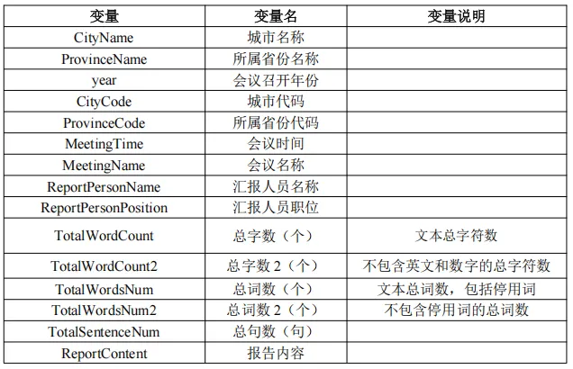 ▪ 数据名称: 地级市政府工作报告文本信息