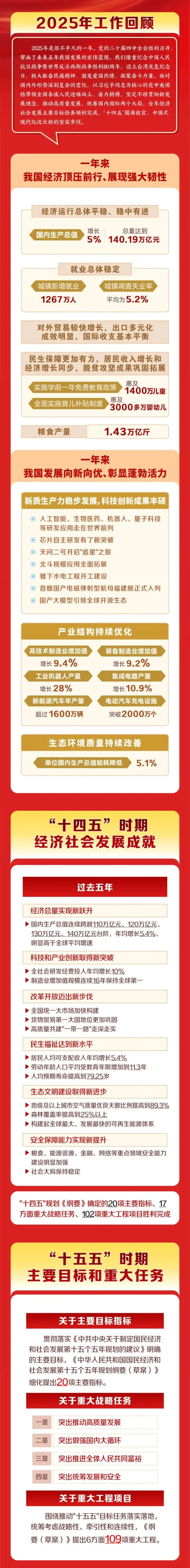 2026年全国两会于3月在北京召开,是"十五五"规划开局之年的关键盛会。全国政协十四届四次会议于3月4日开幕,3月11日闭幕;十四届全国人大四次会议于3月5日开幕,3月12日闭幕。本次会议全面总结2025年经济社会发展成就,科学谋划未来五年发展蓝图,为全面建设社会主义现代化国家、扎实推进中国式现代化注入强劲动力!