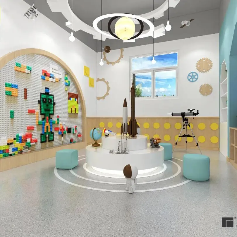 室内改造:3岁以下低龄儿童的专用桌椅及适龄教玩具整齐摆放,洗手台、卫生间、分餐区等进行了适龄化改建,同时分设感官区、爬行区、角色扮演区等不同活动区角,打造低幼专属游戏区。