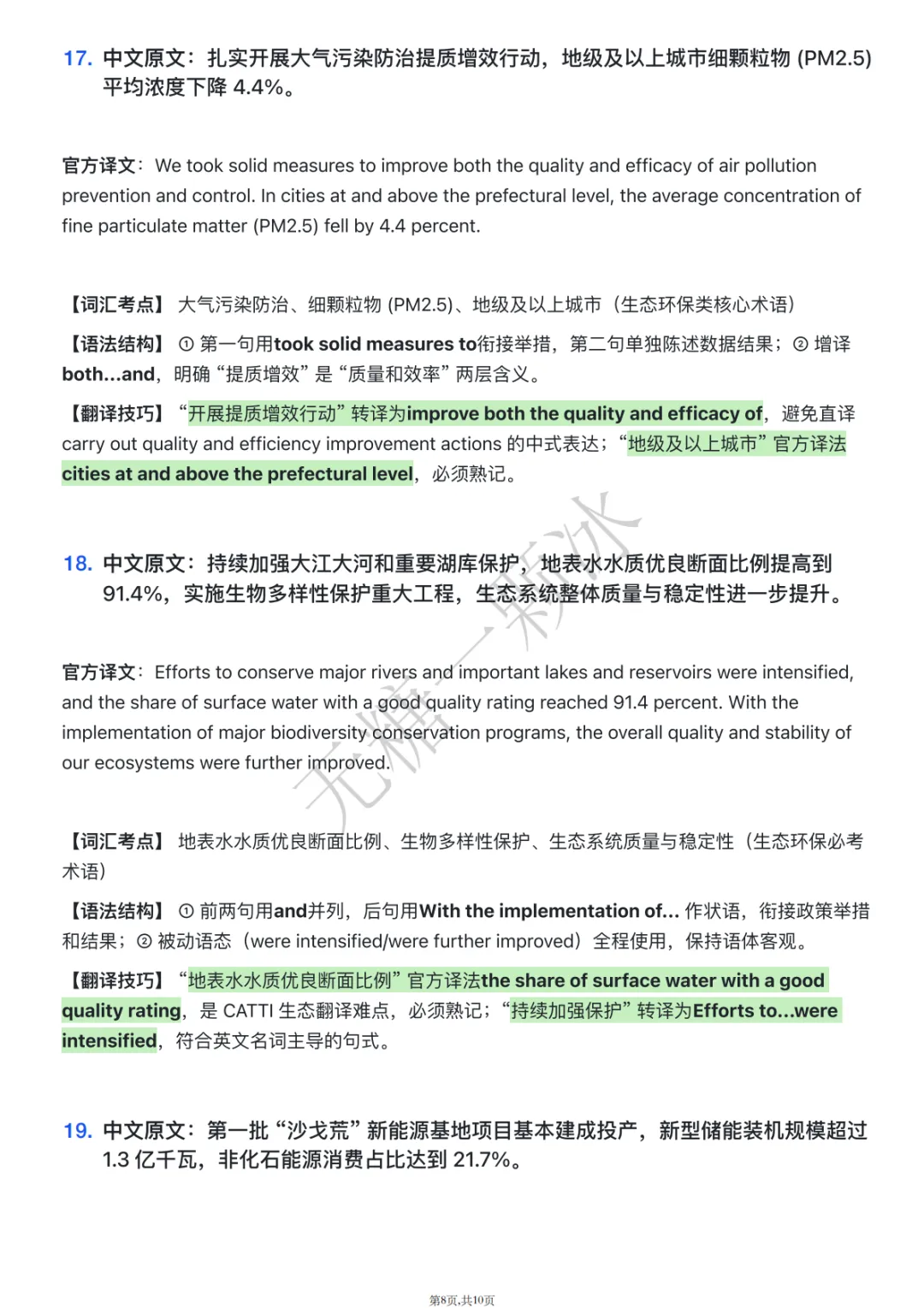 全部选自中英双语官方译文【2026年政府工作报告】我前面分享的第11-18页内容,每句拆解词汇考点 + 语法结构 + 翻译技巧,直击 CATTI 笔译核心痛点,覆盖 “流水句拆分、无主句转换、逻辑增补、专业术语处理” 等 90% 考点。包含中英对照 + 核心考点 + 得分点提示 + 笔译实战技巧