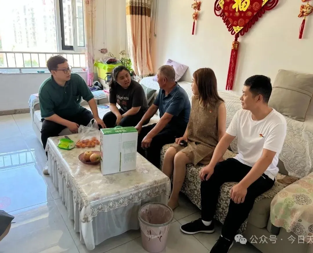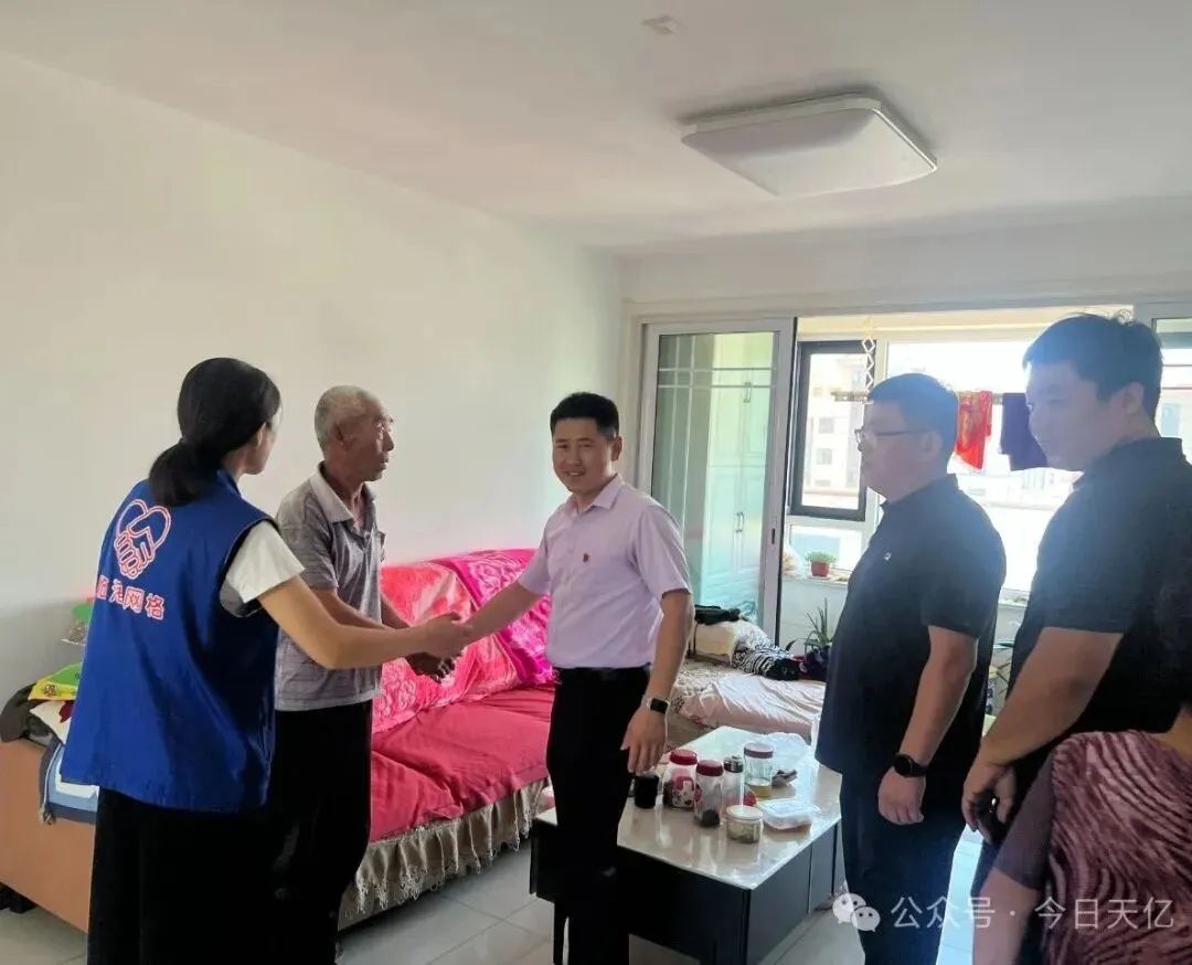 七月建党月,天亿社区党支部联合港信物业、威海临港新材料产业发展有限公司党支部开展走访慰问老党员活动,为他们送去党的关怀和温暖,向他们致以崇高的敬意和亲切的问候。在走访过程中,年轻党员与老党员们亲切交谈,详细询问他们的身体状况和生活情况,认真倾听他们的入党故事和工作经历,共同回忆了那段激情燃烧的岁月。
