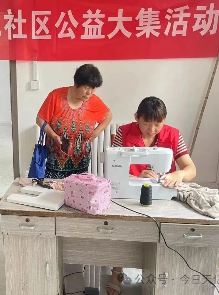 本月的公益大集活动在大木岚小区顺利开展。此次活动设有公益磨刀、公益义诊、公益缝补等多个项目,为 60 多名居民提供了贴心服务。在公益磨刀区域,师傅们通过精湛的手艺,让居民们送来的钝刀变得锋利无比;在公益义诊处,医生们认真地为居民们测量血压、血糖,解答各类健康问题,并给出专业的医疗建议;在公益缝补摊位前,手艺娴熟的志愿者们仔细地为居民修补衣物,让旧衣焕新。