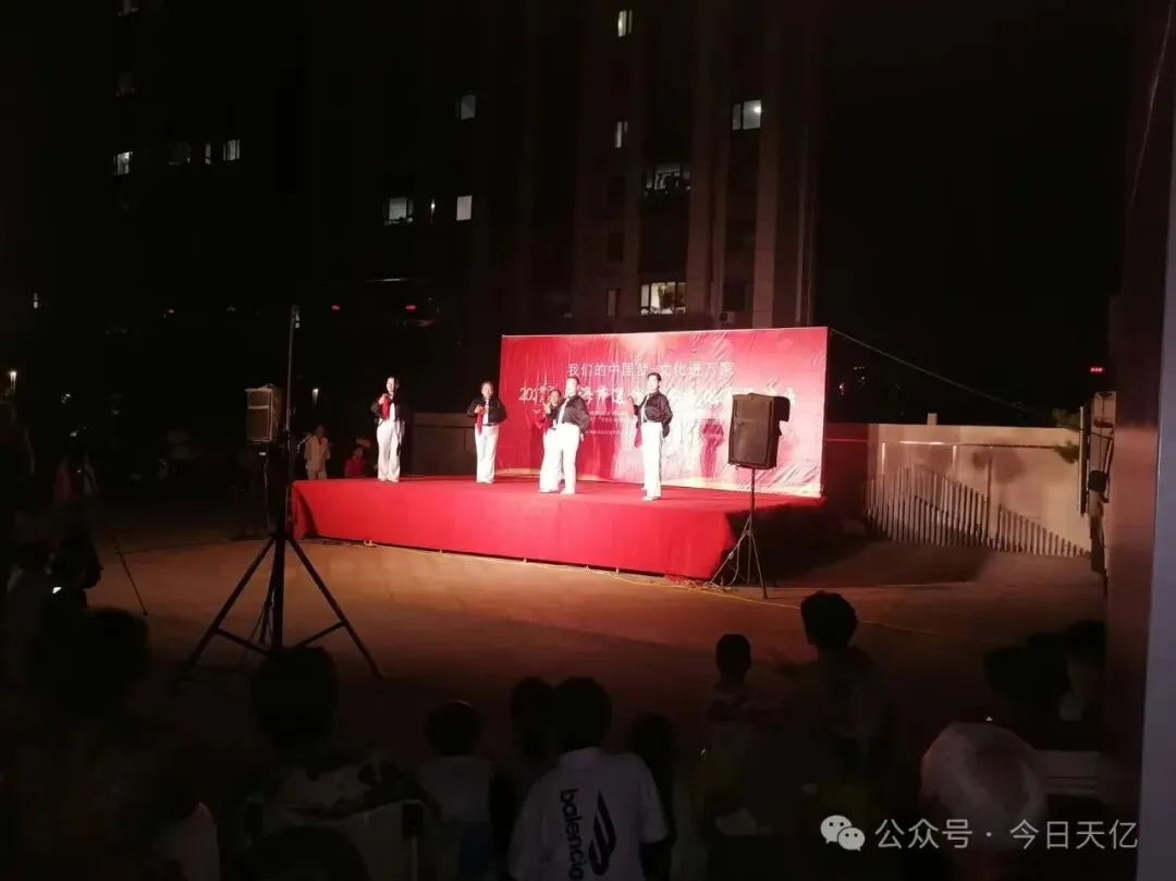 为了丰富社区居民的文化生活,7月份天亿社区党支部在天亿学府小区举办了“文化进万家”纳凉晚会,晚会现场热闹非凡。居民们围坐在一起,一边欣赏节目,一边交流着彼此的感受,现场充满了欢乐和谐的氛围。天亿社区党支部通过举办各种形式多样、内容丰富的文化活动,满足了居民日益增长的精神文化需求,打造一个温馨、和谐、富有文化底蕴的社区。