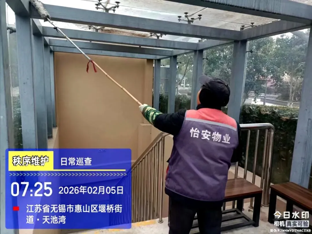环境保洁团队坚守岗位,开展精细化、全覆盖、无死角清洁工作。持续维护园区环境卫生,以干净、整洁、舒适的居住环境,陪伴业主欢度新春佳节。