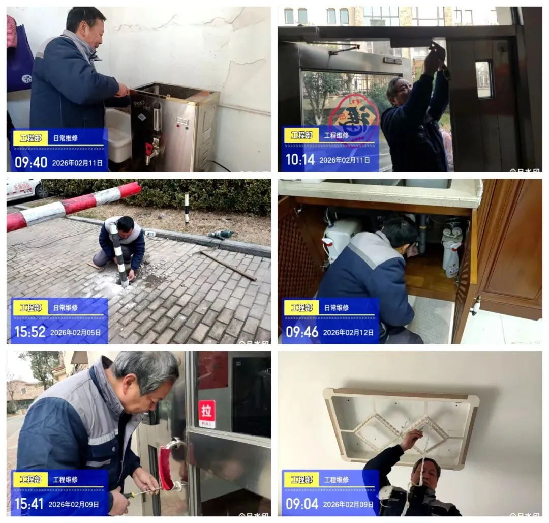 每一处修缮,都是责任的印记。工程部秉持高度的责任心与专业精神,对各类设施设备进行全面细致的维护和保养工作,师傅手握的绝不止是工具,更是为您保驾护航的责任。本月自检维修:15 次;业主报修:16 次;入户维修:11 次。