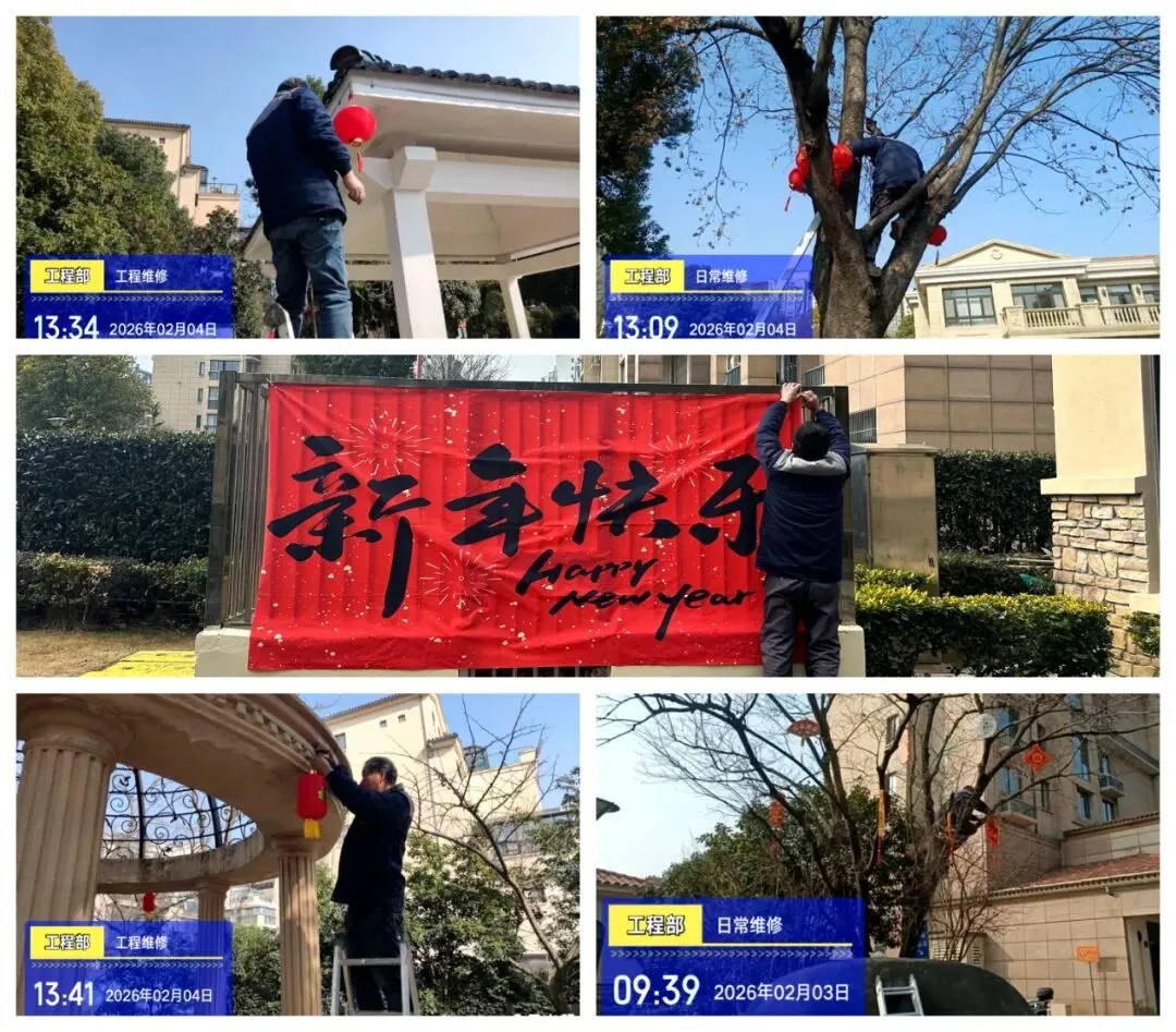 为营造浓厚节日氛围,让业主归家即见年味,服务中心提前谋划、精心布置:园区大门口、主干道、单元门口、广场等区域悬挂红灯笼、张贴福字、布置新春景观。一抹喜庆的中国红,将园区装点的温馨热闹,处处洋溢着欢乐、祥和、喜庆的新春氛围,让幸福里更有“家”的味道。