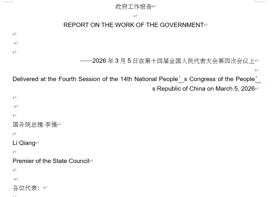 所有翻译爱好者,特别是备考CATTI或MTI的小伙伴们注意了!2026年政府工作报告中英双语完整版已正式整理出炉,近2万字的权威文本堪称本年度语言学习者的“宝藏资料库”!