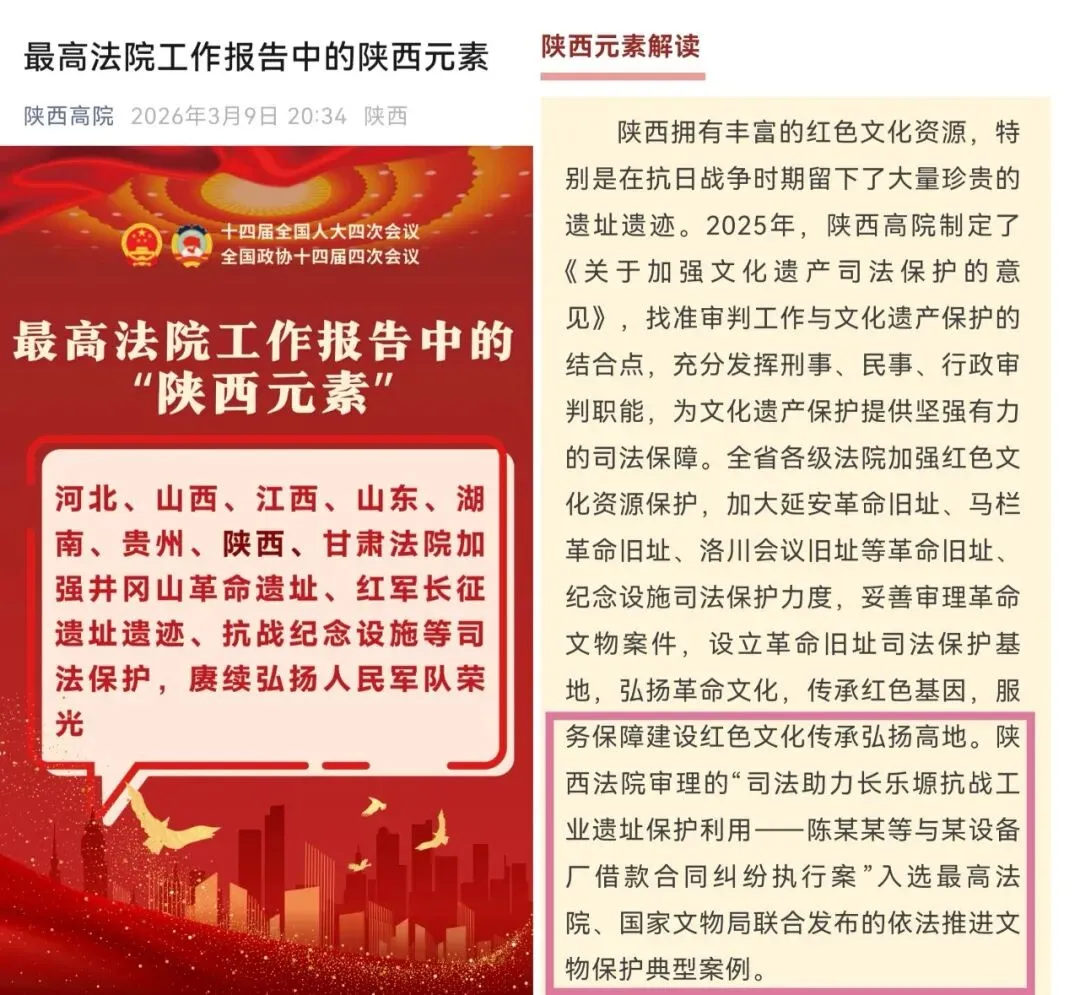 3月9日,十四届全国人大四次会议在人民大会堂举行,最高人民法院院长张军向大会作最高人民法院工作报告,报告中多次出现“陕西元素”,其中提到