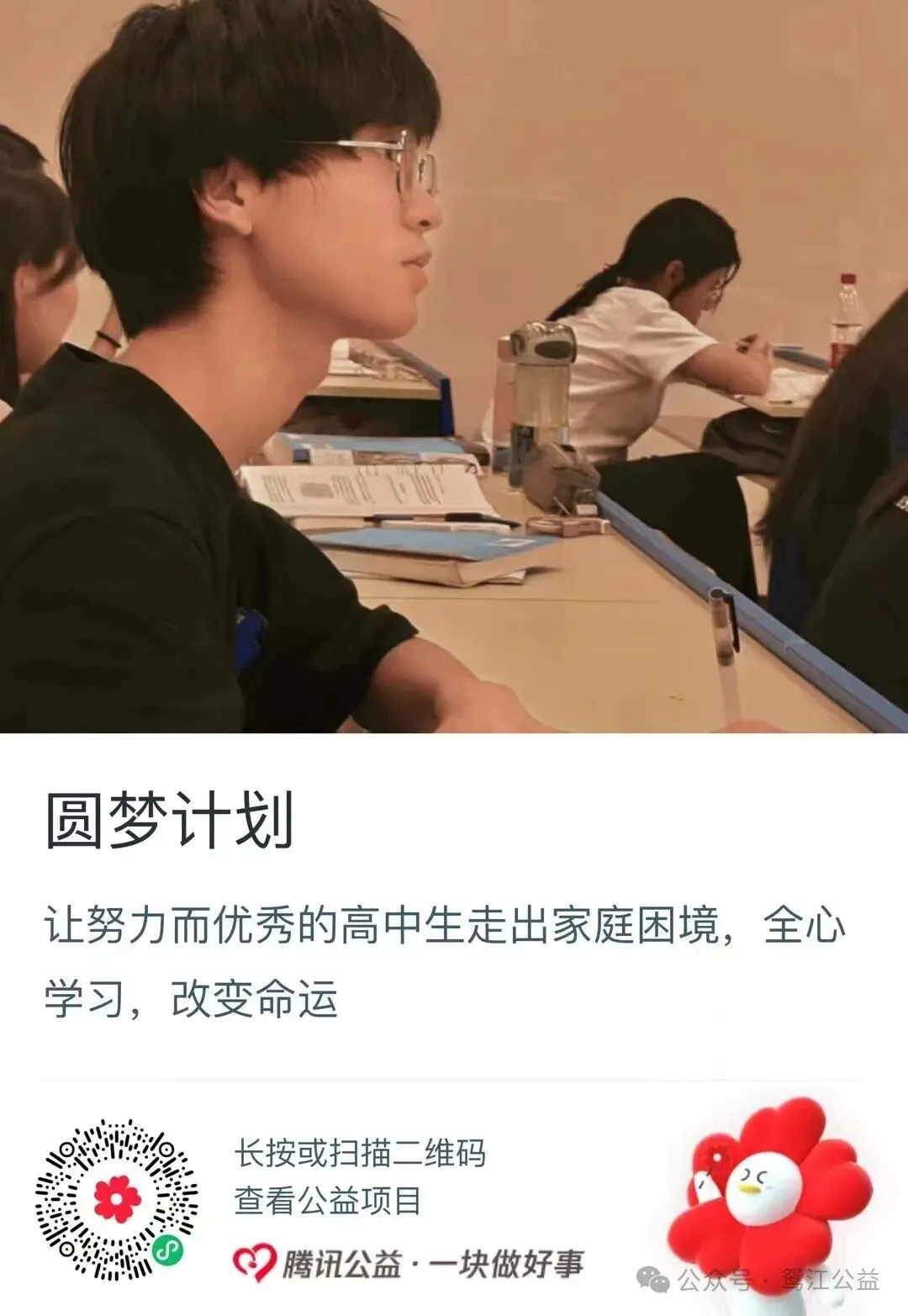 协会圆梦计划项目为陷入家庭困境的高中学生提供学习和生活保障,助力困难优秀学生圆梦大学。目前已在腾讯公益平台上线,我们需要你的支持,一起帮助这些困难优秀高中生,让他们全心投入学习,努力拼搏,不负韶华,实现大学梦!