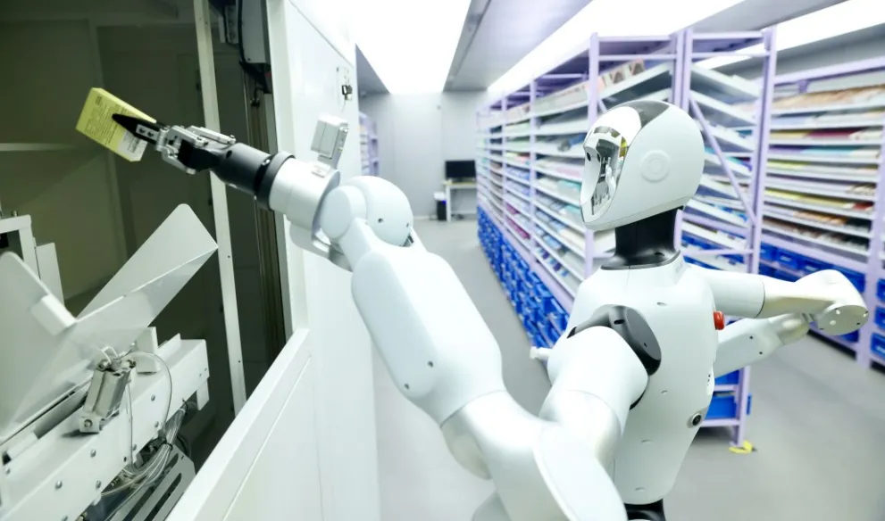 3月12日,药品智能零售机器人Galbot G1在北京海淀的一家药店内将药品放入智能取货柜。中新社记者 易海菲摄