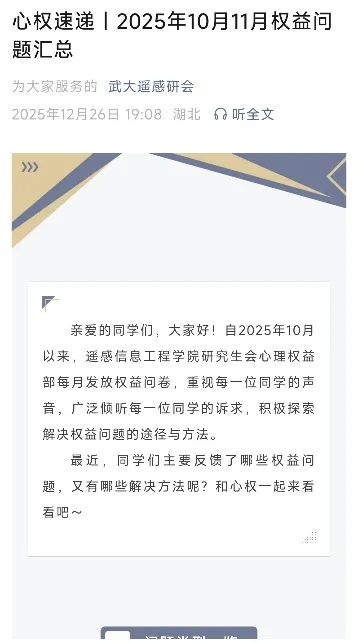 (1)面向全体研究生持续发布月度权益问卷,常态化收集意见与需求。