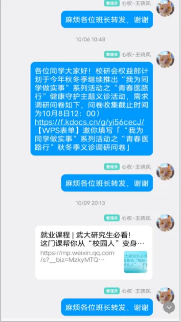 (2)及时转发校园心理健康服务资讯,确保同学快速获取专业支持。